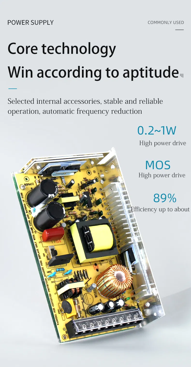 Industrial dustproof belt short-circuit protection, durable, multi-functional, high-quality T series switching power supply. Features stable output, intelligent control, and multiple protection mechanisms. Suitable for a wide application range with two different cooling modes and an intelligent chip to ensure stable output.